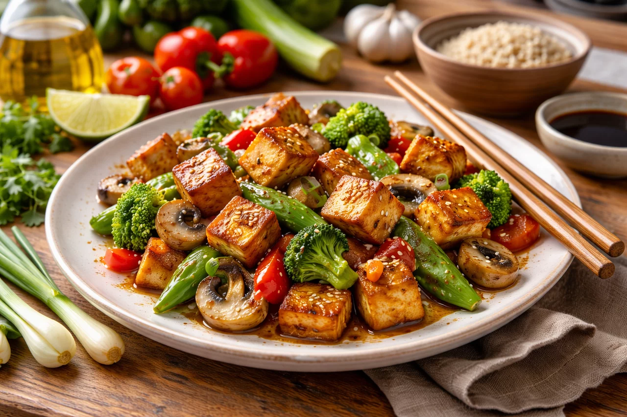- Tofu-Bowl: Gebratene Würfel über Quinoa oder Reis mit gedünstetem Gemüse, Avocado und einem Tahini- oder Erdnuss-Dressing – gesund und abwechslungsreich.